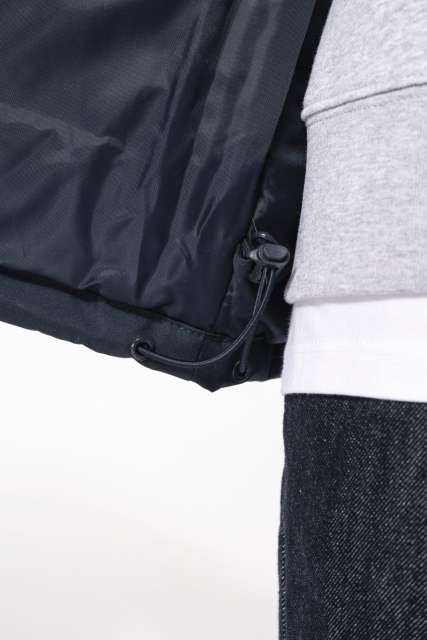 Rejtett kapucni elasztikus húzózsinórral és cipzáras hozzáféréssel